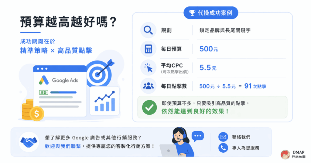這樣的設定下,即使預算不多,但如果您的網站能夠吸引高質量的點擊,依然能達到良好的效果。